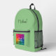 Benutzerdefinierte elegante moderne Niedliche, trendige, einfache Vorlage Hochladen Bild-Foto oder Business-Logo Hinzufügen handgeschriebenen Skriptnamen oder Text-Seite Grün Solid Color Zubehör / Taschen & Wallets / Rucksack.