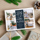Carte photo de vacances à base de typographie moderne présente quatre de vos photos préférées dans un format carré, avec "Gloire au nouveau-né roi" centré en blanc style lettré typographie sur riche marine de minuit bleu. Personnalisez avec votre nom de famille, vos noms individuels et/ou votre message de Noël personnalisé. Les cartes sont retournées à un motif de neige blanche et les étoiles sur un arrière - plan bleu foncé assorti.