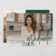 Moderne Abschluss-Ankündigung mit Ihrem horizontalen Foto auf der Vorderseite mit "Graduate" in einem handgeschriebenen grünen Skript-Overlay angezeigt. Personalisieren Sie die Titelseite der Ankündigung des Foto-Abschlusses mit dem Namen des Absolventen, Schulname und Abschluss Jahr. Die einfache Ankündigung des Abschlusses kehrt zurück, um ein zusätzliches Foto mit Platz zur Verfügung zu stellen, um die Pläne des Absolventen, Abschluss Details, etc. enthalten. Die Ankündigung von 2 Foto Abschluss ist perfekt für High School und Uni-Abschlüsse!