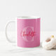 Brighten Sie Ihren Morgen mit diesem handgeschriebenen Script Quirky Whimsy Mit Monogramm Coffee Tasse! Mit einer spielerischen roten Typografie auf einem rosa Hintergrund präsentiert dieses trendige Design Ihre Monogramm und Ihren Namen in einem lustigen, skurrilen Stil. Eine stilvolle und ästhetische Wahl für alle, die einen Pop Liebe!