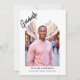 Handgeschriebenes Skript Moderne Arch 2-Foto Abschluss Ankündigung ist die perfekte Karte, um Familie und Freunden wissen, die scholastischen Leistungen und Bemühungen Ihres Absolventen lassen. Die Vorderseite ist mit einem großen bogenförmigen Foto mit Namen und Abschluss-Details ausgestattet, während die Rückseite ein zweites Foto in einem kleinen Bogen, persönliche Note und Signatur-Begrüßung hat.