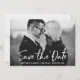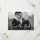 Moderne, handgeschriebene Verlobung Save the Date Ankündigung Schwarz-Weiß-Fotokarte