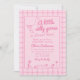 Wenn Sie eine elegante, einzigartige und leicht anpassbare Baby Girl Dusche Einladung suchen, ist dies perfekt für Sie. Wie Sie sehen, ist es mit einem Retro-handgeschriebenen Skript einer kleinen albernen Gans fast in vivid pink vorhanden. Und handgezogene Gans. Und rosa Rahmen und rosa karierte Quadrate. Al auf blassrosa Hintergrund. Sehr einfach zu anpassen und zu bedienen. So packen Sie es und männlich Ihre Einladungen sehr verlobt.