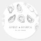 Feiern Sie Ihre Hochzeit/Verlobung mit diesen eleganten Aufklebern mit gezeichnet Champagner, Austern und bearbeitbaren Details. Fügen Sie einfach Ihre eigenen Daten hinzu, indem Sie auf die Option "Personalisieren" klicken.