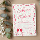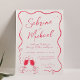 Eine handgezeichnete Hochzeitseinladung mit Wellen und einem Champagnerglas. Bitte passen Sie die Namen und das "+" Zeichen für die beste Passform an.
