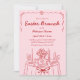 Rosa und rot Handgezeichnet Osterbrunch Einladung mit Schnörkel, Bögen, Ostereiern und sonnigen Ohren.