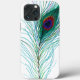 Elegante türkis, lila, blau und grün gezeichnete Pfauenfedern Telefongehäuse.