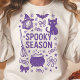 Dieses skurrile Sweatshirt eignet sich perfekt, um die lustige Saison zu feiern. Im Doodle-Design finden Sie handgezeichnet Illustrationen von Coquette-Bögen, Süßigkeiten, Hexen, Katzen, Fledermäuse, Kessel und vielem mehr, die den festlichen Satz "Spooky Season" umgeben. Es ist eine großartige Art, Halloween in dieser Saison zu feiern.