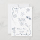 Diese handgezeichneten Strand-Doodle-Illustrationen für Dankeskarten zur Brautparty zeichnen sich durch eine saubere weiße Vorderseite aus, die mit staubblauen Strand-Doodles verziert ist – Wellen, Muscheln, Seesterne, Sonnenbrillen, kleine Herzen und Glitzer –, akzentuiert durch einen spielerischen welligen Rahmen in zwei Ecken. Zentrierter Text lautet „Danke“, mit einer anpassbaren Stelle darunter für den Namen der Braut und das Datum der Veranstaltung. Die Innenseite ist leer, damit Sie eine herzliche Nachricht hinzufügen können. Alle Farben und Details können bearbeitet werden, um Ihrem stilvollen Strand-Brautparty-Stil zu entsprechen.