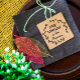 Made mit Liebe Briefmarke mit einem einfach gezeichnet Kranz mit Blätter und kleinen Blume. Fügen Sie Ihren Namen in einem modernen Pinselskript hinzu.