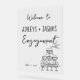 Whimsical Hand illustrierte Verlobung Willkommensschild mit Champagnerturm.