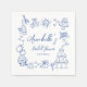 Handgezeichnetes blaues weißes Brautparty Serviette