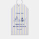 Whimsical mediterranes Brautparty bedankt sich bei den Geschenketiketts, die eine handgezeichnet Darstellung von Essen und Wein in einem lustigen und spielerischen Stil mit einem lässigen, handgeschriebenen Schriftart enthalten. Mit einer weichen und einladenden Farbpalette aus Buttercreme und weichen blauen Streifen. Diese ruhige Kulisse wird perfekt durch den dunkelblauen Text ergänzt, der eine harmonische Farbmischung schafft.