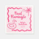 Das "Final Flamingle" Serviettendesign mit einem lebhaften, hellrosa, handgezeichnet Squiggle-Rahmen verleiht dem Hintergrund eine spielerische Touch. Dieses Design ist von skurrilen, von Hand gezeichnet Ikonen eines Flamingo-Spielzeugs, einem erfrischenden Kokosnuss-Getränk und einer Palme geschmückt und Set die Szene für ein tropisches und unterhaltsames Wochenende.