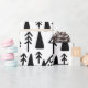 Handgezeichnetes Set. Sammlung mit Bergen und Bäumen. Abgeschiedene schwarze Elemente auf weißem Hintergrund.