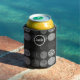 Handgezeichnete Kreise Abstrakt Schwarz/Weiß B/W Can Cooler - Ein Kreissegment aus Punkten, Wirbel, Blasen und Linien, alle in Weiß auf schwarzem Hintergrund gezeichnet. Ein Monogramm ist in diesem Design enthalten, sodass Sie niemals Ihre Dose oder Koozie bei einem Party oder einer Heckklappe verlieren werden. Eine handgezeichnete Soda kann cooler aussehen, wird ein großartiges Geschenk für Freunde oder Familie.