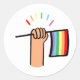Handgezogenes Hand Waving a Rainbow Flag Runder Aufkleber