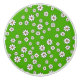 Handgriff aus farbenfrostigem Keramikmaterial. Grünmatte mit kleinen weißen Blüten unterschiedlicher Größe.