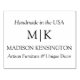 Moderne Minimalistische Business Handmade in USA (oder Wechsel in Ihre Stadt, Staat, Stadt, Land) Gummi Ink Briefmarke. Ideal für kleine Unternehmen, Firmenmarken, Selbstständige, Online-Verkäufer und vieles mehr. Einfach mit Ihren Monogramm-Initialen, Firmennamen und Informationen, Jobtitel, Slogan oder sogar mit Ihrem Logo oder persönlichem Markendesign personalisieren.