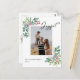 Das Design verfügt über ein individuelles Foto, das an den Ecken mit einem holzigen Bouquet aufwartet. Freude ist in modernen handgeschriebenen Schriften geschrieben. Passen Sie diese Postkarte mit Ihren persönlichen Informationen und Informationen an.