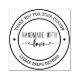 Briefmarke aus Gummi für handgemachte Handwerksarbeiten und Produkte. Die Formulierung in der Mitte lautet "handgemacht mit Liebe" in eleganter Kalligraphie mit Liebe Herz. Die Vorlage ist für Sie Set, um den Schreibmaschinentext am Rand zu personalisieren, der derzeit "Vielen Dank für Ihre individuelle Arbeit [Ihr Name / Ihr Unternehmen]" lautet. Bitte stöbern Sie in unserem Shop für die Koordination von Aufklebern, Etiketten und Tags.