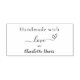 Personalisieren Sie Ihren Namen und fügen Sie ihn hinzu. Mit dem Text: Handmade mit Liebe, von + ein kleines Herz.