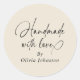 Handmade mit Liebe Script für kleine Unternehmen | Ecru Classic Round Sticker