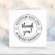 Einfache runde Briefmarke mit Dankeschön-Nachricht umgeben von anpassbarem Text. Bitte beachten Sie, dass Sie die eingegebenen Informationen möglicherweise anpassen müssen, indem Sie einige Zeichen hinzufügen oder löschen, um den Text korrekt anzupassen.