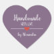 Moderner Aufkleber "handgefertigt mit Liebe" mit weißem Schriftart auf lila Hintergrund, verziert durch ein niedliches rotes Herz. Text anpassen.