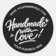 A modern hand-lettered “Handmade with Love” sticker featuring bold brush-style typography and a small star accent. Perfect for packaging, small businesses, handmade products, and gift wrapping.