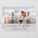 Wählen Sie die besten Bilder aus Ihrem Verlobung-Shooting oder Ihre Lieblingsfotos von Ihnen beiden für dieses perfekte Save the Date. Save the Date sind die Wörter handgeschrieben, um der Karte ein persönliches Gefühl zu geben. Die Vorderseite hat 3 Bilder und die Rückseite hat ein großes Bild mit einem weißen Filter oben.