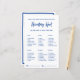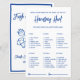 Verleihen Sie Ihrer Brautparty mit diesem Handtaschen-Spiel eine spielerische Energie - eine lustige Schnitzeljagd für Handtaschen, die im Stil eines sauberen blau-weißen Frischmarktes gestaltet ist.