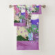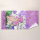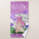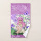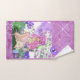 Junge Mädchen mit Blume und Schmetterlingen auf Handtuch Set. Lila