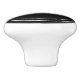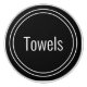 Dieser schwarze Knopf hat einen weißen Bildschirmtext. Sie können es bearbeiten, um zu zeigen, was sich in der Schublade oder im Schrank befindet. (Angezeigt: Handtücher) Zwei weiße Kreise bilden einen Rahmen für den Text.