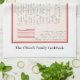 Dieses Küchentuch kennzeichnet handgeschriebenes Rezept der Großmutter/Mutter Rose Annette für eine Marinade. Es wird Co-eingebrannt, um "das Kochen auf der Küste zu begleiten: Das O'Keefe-Familien-Kochbuch," das ist für Verkauf an cookingonthecoast.com