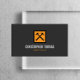 Ein Logo der Schnitthammer in einer orangefarbenen Box wird mit Ihrem Namen oder Firmennamen für eine berufliche Ästhetik auf dieser Visitenkartenvorlage kombiniert, die für Handwerker, Zimmerleute, Bauunternehmen usw. konzipiert ist © 1201AM CREATIVE