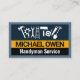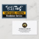 Cover bietet ein kreatives Rahmendesign mit einer Reihe von Handywerkzeugen an der Spitze der Karte. In der gelben Schicht haben Sie neben dem Firmennamen "Handyman Service" in der Nähe des Grundstücks Ihren Namen. Hinter einem weißen Cover befindet sich oben ein goldenes Zuhause-Landschaftslogo, gefolgt von Ihrem renommierten Namen, den Kontaktdaten und einer Slogan-Option, um Ihre Dienstleistungen zu veröffentlichen. Ein großartiges Design für Handwerker und Gebäude-Auftragnehmer. #handyman #homerepairtragan #construction #Gebäude #tragning #remodeling #building #homerepair #interiordesign #homeimprovement #handymantools #zazzlemade