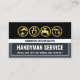 Die Abdeckung ist mit einem schwarzen Set in der oberen Ebene gegen einen grauen, schattigen Rahmen direkt darunter versehen. Oben steht eine Reihe von Gold Handyman-Tools, die einige der Dienstleistungen darstellen können, die Sie anbieten. Ihr Name ist hier in einem weißen Streifen untergebracht. Am Standort haben Sie den Firmennamen "HANDYMAN SERVICE", den Sie mit den Kontaktdaten ändern können. Auf der Rückseite, in einem weißen Cover, oben ist ein goldenes Zuhause-Landschaftslogo, das Sie benutzen können. Danach folgen Ihr Name, die Kontaktdaten und ein Slogan, um Ihre Dienste bekannt zu machen. Dies ist ein großartiges Design für Handwerker und Gebäude-Auftragnehmer. #handyman #construction #homeconstruction #Gebäude #homerepair #buildingtragning #generaltragnant #builder #remodelder #handymantools