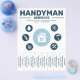 A professional handyman services flyer with tear-off tabs in light & bold blue color. A clean & modern design with a central home icon, surrounded by icons representing different repair tools including water drop, electrical symbol, paint roller, handsaw, hammer and wrench.