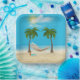 Hängematte zwischen zwei Palmen mit Seestern, Cocktail-Drink und Flip Flops auf dem Strand Sand mit Sommerwolken.
