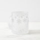 Die wunderschöne verzierte Weihnachtsfeier mit Schneeflocken, die in verschiedenen Höhen von der oberen Tasse vor einem Sternenhintergrund hängen.