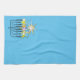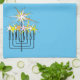 Menorah mit dem Wort Hanukkah als Kerzen mit funkelnd bunten Lichtern.