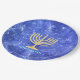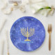 Für Ihr Chanukkah Party. Eine glühende goldene Hanukkah menorah und "Chag Chanukkah Sameach" (Happy Hanukkah) in leuchtend blau-weiß Text überlagert auf einem blau-weiß-Fraktal Bild erinnert an Schneeflocken in einem Sturm.