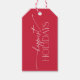 This elegant yet modern holiday gift tag features red calligraphy script over a white background. The greeting says "Happiest Holidays". All colors of this design are customizable. See the collection for alternate greetings and coordinating items.