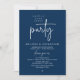 Announce your happily ever after in style with our modern minimalist casual script design wedding reception elopement dinner celebration invitation card in navy blue theme. Our "Happily Ever After Party" Invitation card is ideal for couples who have decided to elope and want to host a party to celebrate their union. With its sophisticated yet playful design, this invitation is sure to set the tone for an unforgettable event. The invitation card features a minimalist design with a black and white scheme, adding a touch of timeless elegance to your celebration.