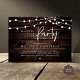 Woth joyius hearts, announce and share your happily ever after in style with our modern rustic string lights, cottage dark wood theme design "Happily ever after party" wedding elopement or reception dinner and dancing celebration invitation card. It is ideal for couples who have decided to celebrate their best day. With its sophisticated yet playful design, this invitation is sure to set the tone for an unforgettable event. The invitation card features a modern and minimalist script design theme, adding a touch of timeless elegance to your celebration. Designed by TeeshaDerrick