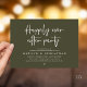 Celebrate the magical evening after “I do” with this sophisticated and romantic wedding reception dinner and dancing invitation — perfect for honouring the couple celebrating their big day. Design Highlights, Modern minimalist aesthetic with bold serif typography and flowing script, “Happily ever after party” headline sets a dreamy, timeless tone, Clean layout with ample space for all essential details (date, time, venue, RSVP info) and Crisp white text on olive green background — classic, chic, and effortlessly elegant. Perfect for Intimate rehearsal dinners, Pre-wedding celebrations with family and close friends and Couples who love modern calligraphy and understated luxury.