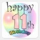 Roze Gelukkige 11de verjaardag. Voor iemand die elf is geworden. Vrolijk ontwerp met regenboog kleuren.
