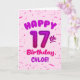 Celebrate their 17th birthday with a bright, cheerful, and personalizable birthday card! This custom name birthday card features a bold number seventeen balloon and pink confetti.