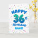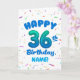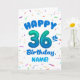 Celebrate their 36th birthday with a bright, cheerful, and personalizable birthday card! This custom name birthday card features a bold number thirty six balloon and colorful confetti.